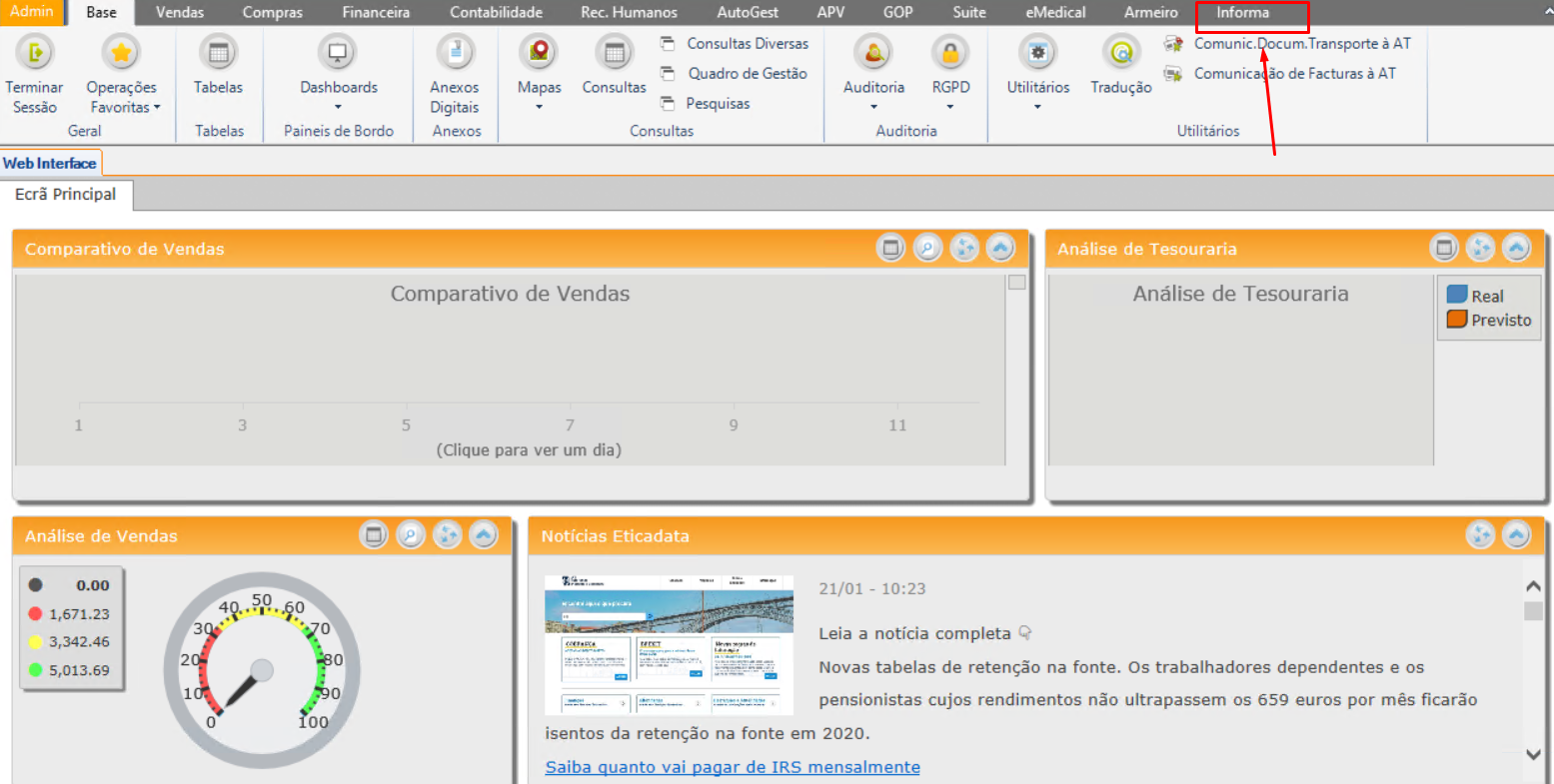 O ERP Eticadata versão 19 é a aplicação que recebe o add-on e consequentemente toda a informação adicional contratualizada com a Informa.