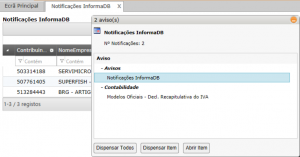 O sistema verifica periodicamente se existem notificações. O utilizador é informado através do popup de alertas do ERP.