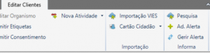 Se tiver ativo na ribbon de contexto as opções Informa, pode executar a operação nas janelas de clientes e fornecedores (opção “Ad. Alerta” na ribbon de contexto).