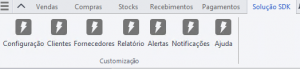 Na ribbon “Solução SDK” permite o acesso à ficha simplificada de cliente e fornecedor.